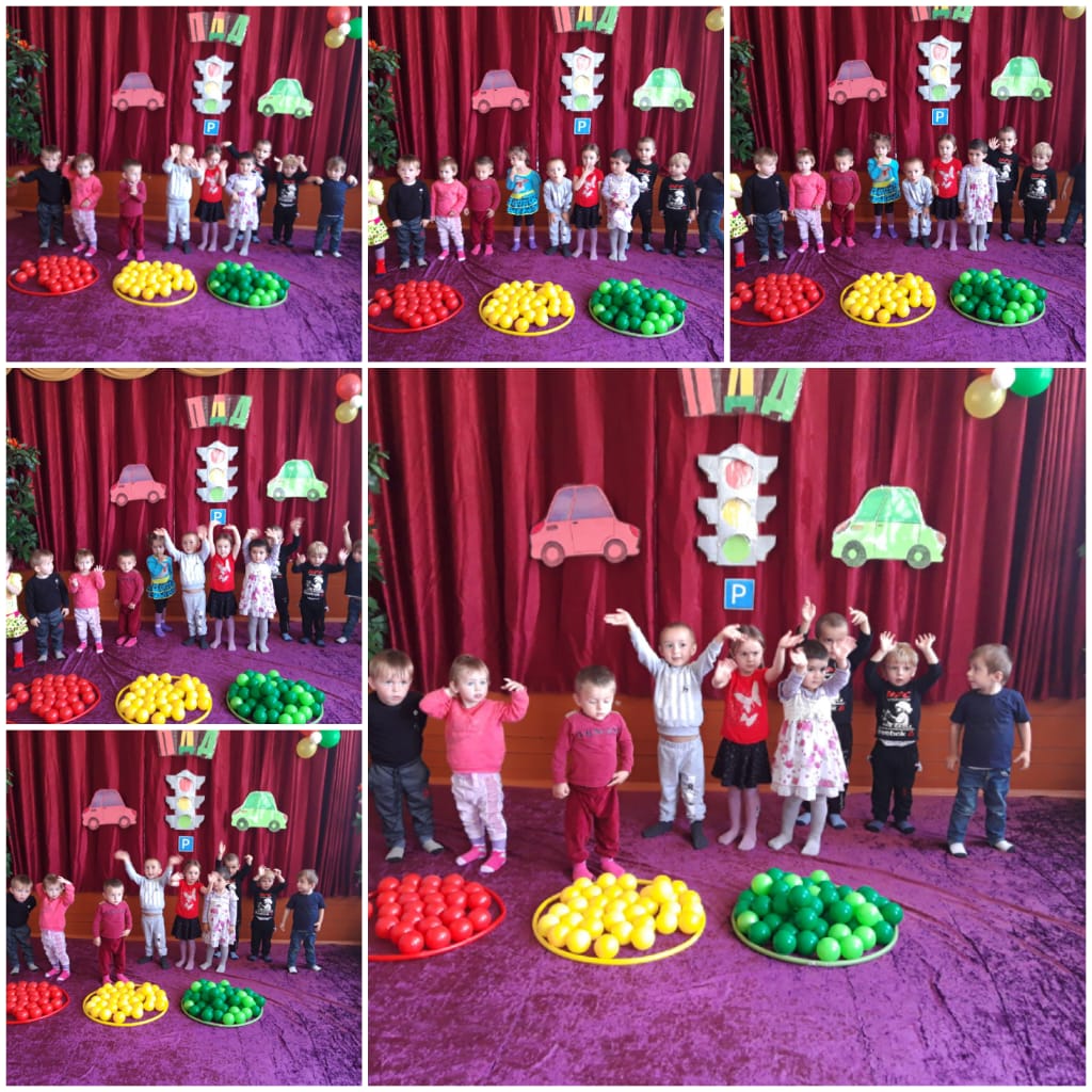 В детском саду №6 "Ромашка", в младшей группе "Звёздочки" и в старшейгруппе "Солнышко" проведено развлечение по правилам дорожного движения по сценарию "Веселый светофор".