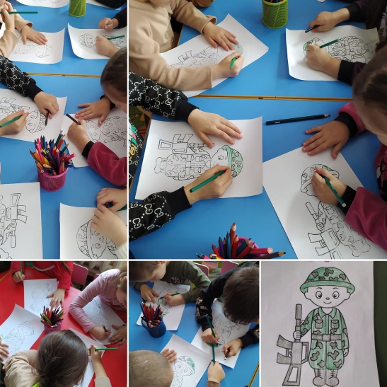Тема: «Солдат на посту».Цель: Учить детей создавать в рисунке образ воина, передавать характерные особенности костюма, поз: человека, его оружия.