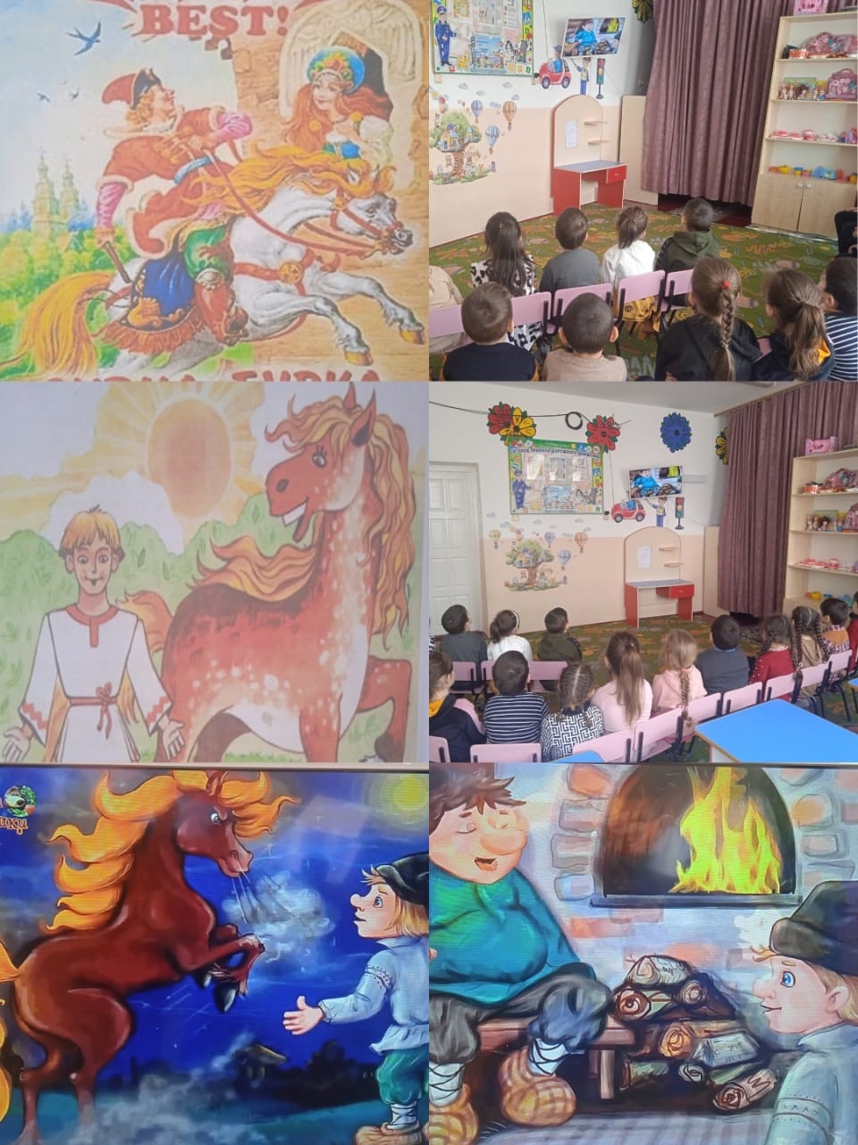 20.03.2024Развитие речи. Рассказыввние русской народной сказки «Сивка-бурка».Цели: расширить знания о сказке; сделать вывод, чему учить это сказка развивать умение самостоятельно задумывать содержание своей работы, доводить замысел до конца, используя разнообразные приемы.